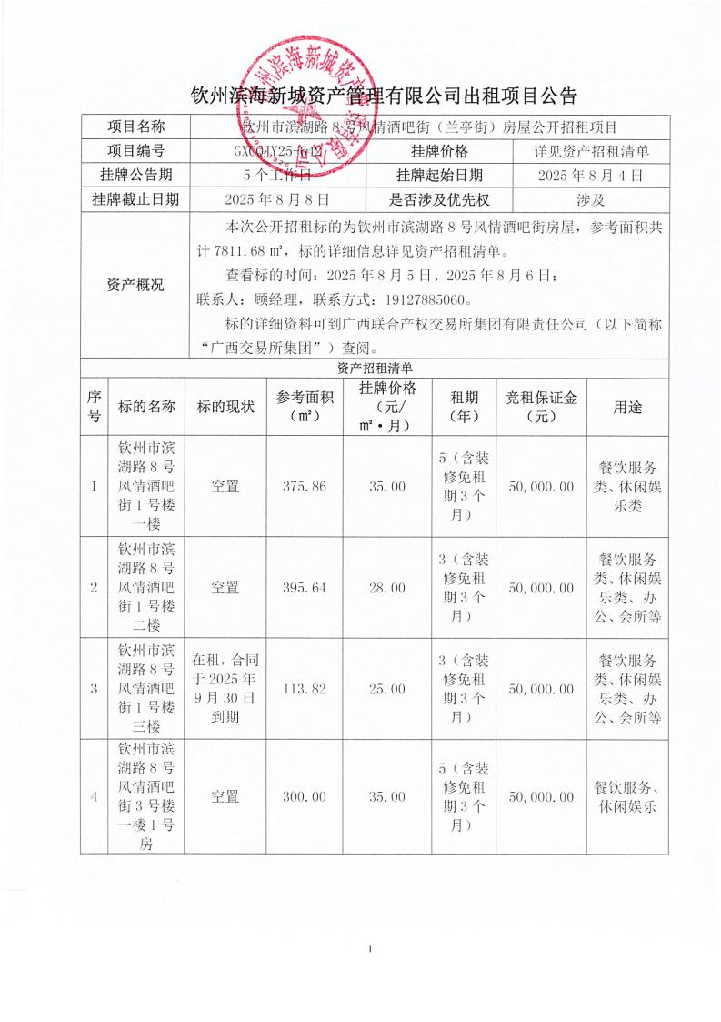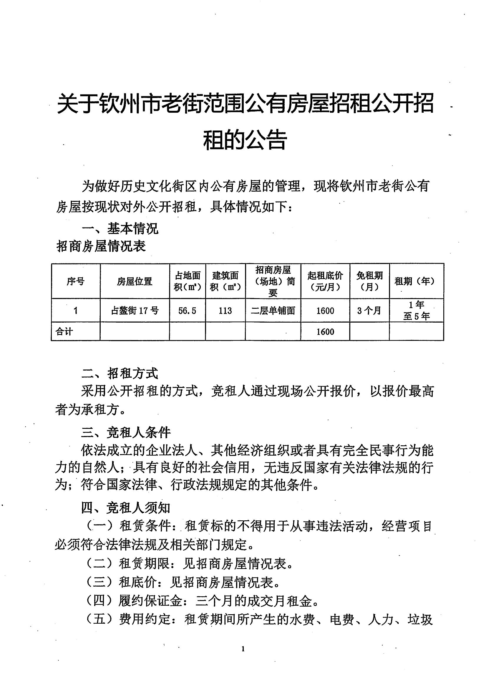 關(guān)于欽州市老街范圍公有房屋公開招租的公告