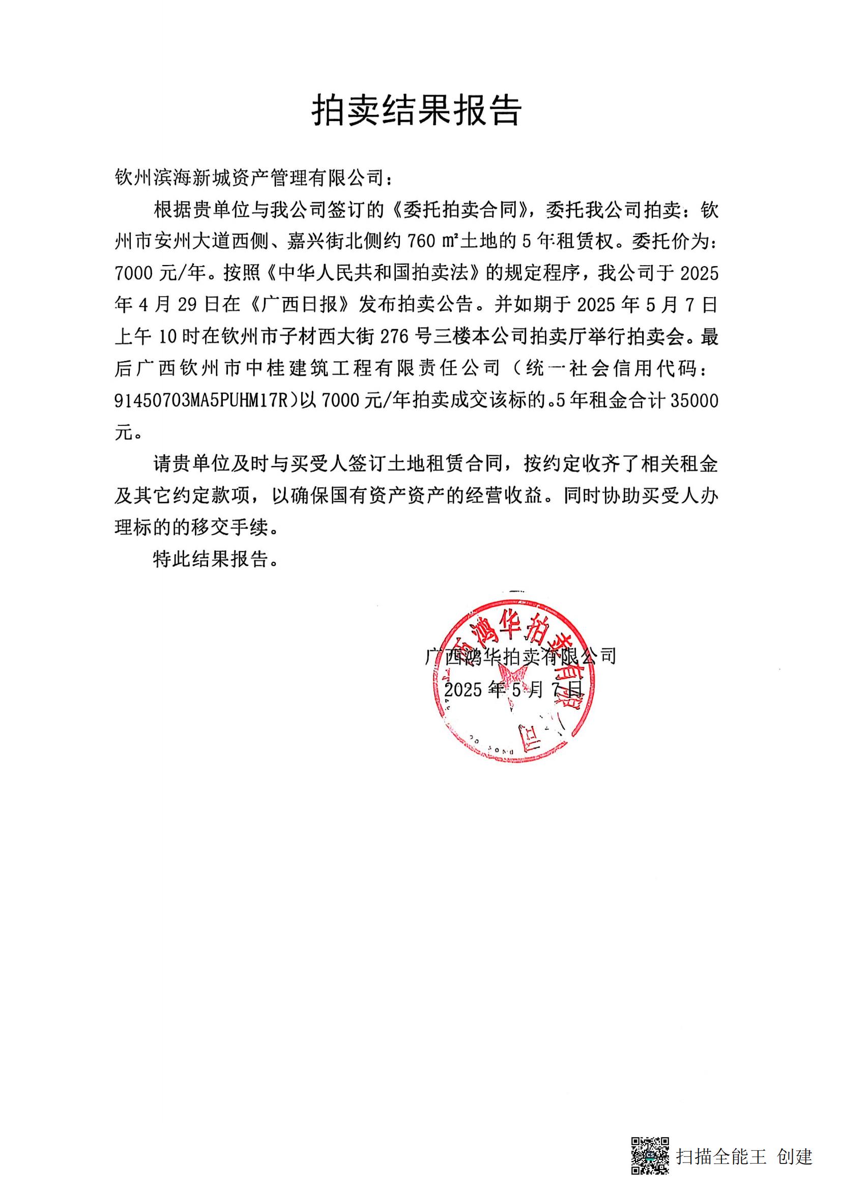 欽州市安州大道西側(cè)、嘉興街南北側(cè)約760㎡土地的5年租賃權(quán)拍賣文件