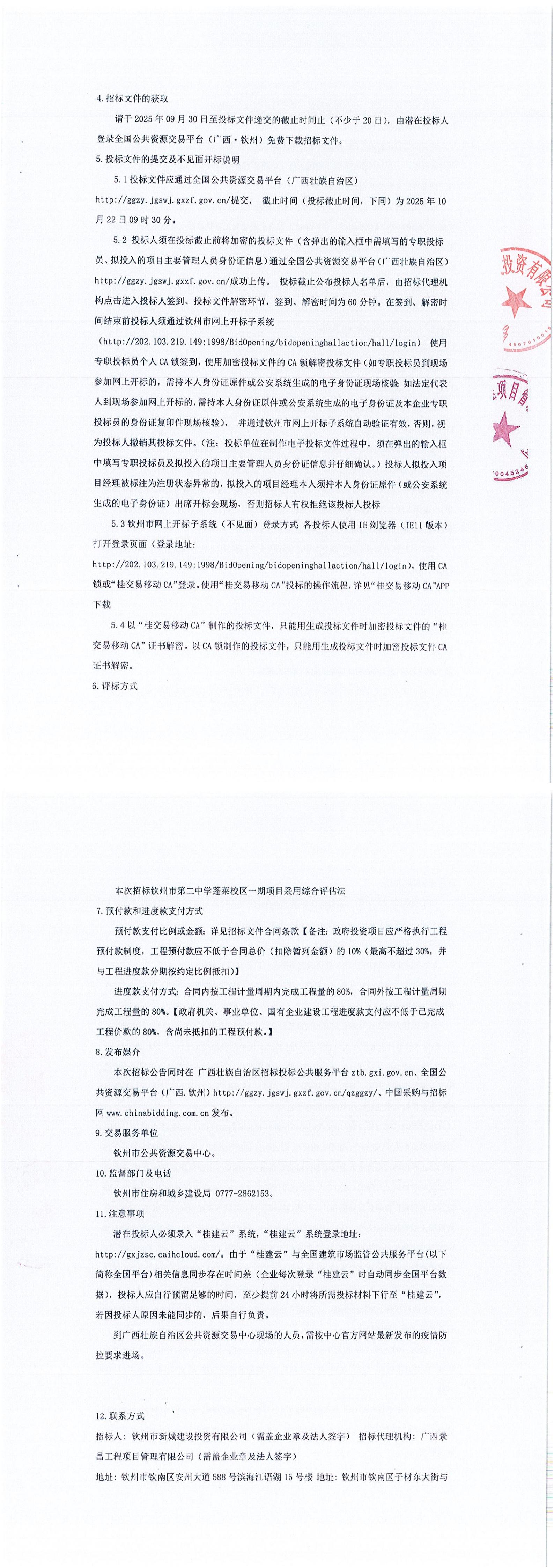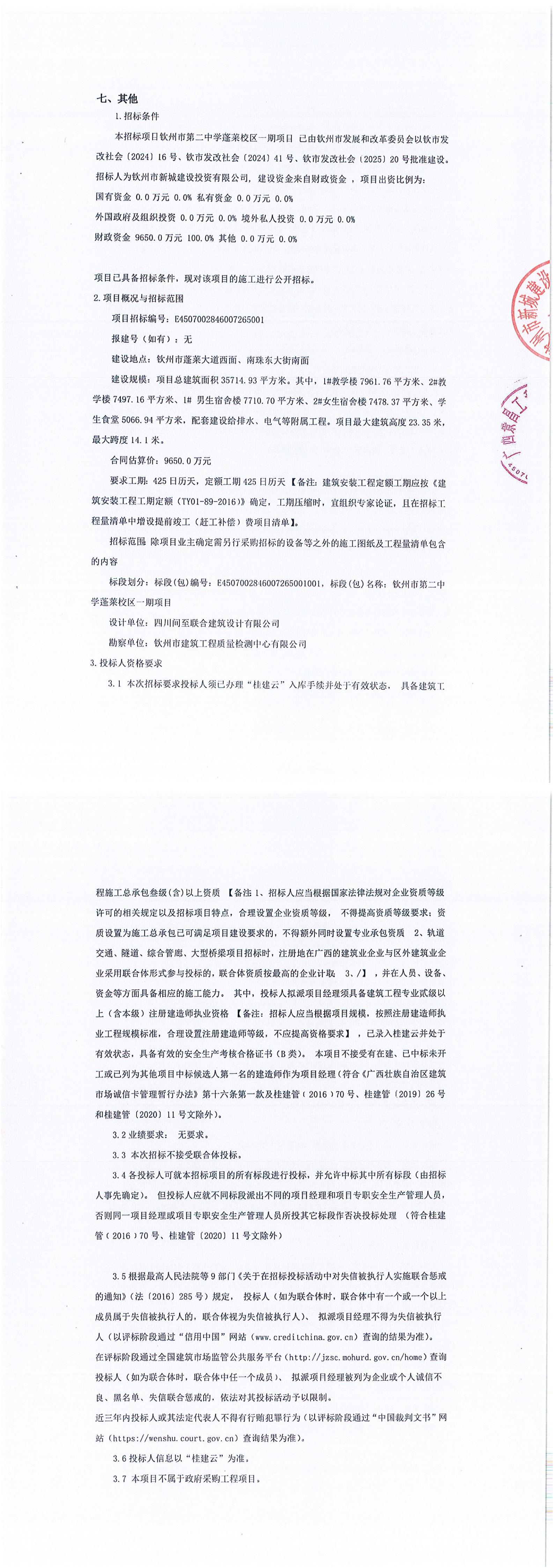 欽州市第二中學(xué)蓬萊校區(qū)一期項(xiàng)目施工招標(biāo)公告