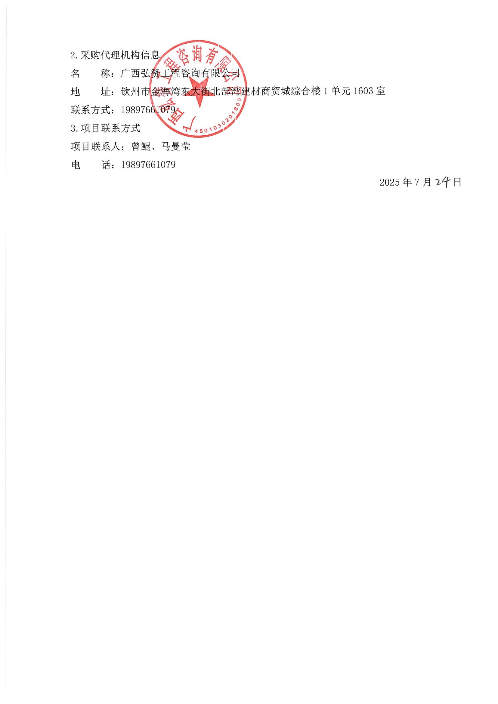 廣西弘贊工程咨詢有限公司關于欽州市市政工程和照明管理處(平山大街)新建路燈箱變10KV配電工程的成交公告