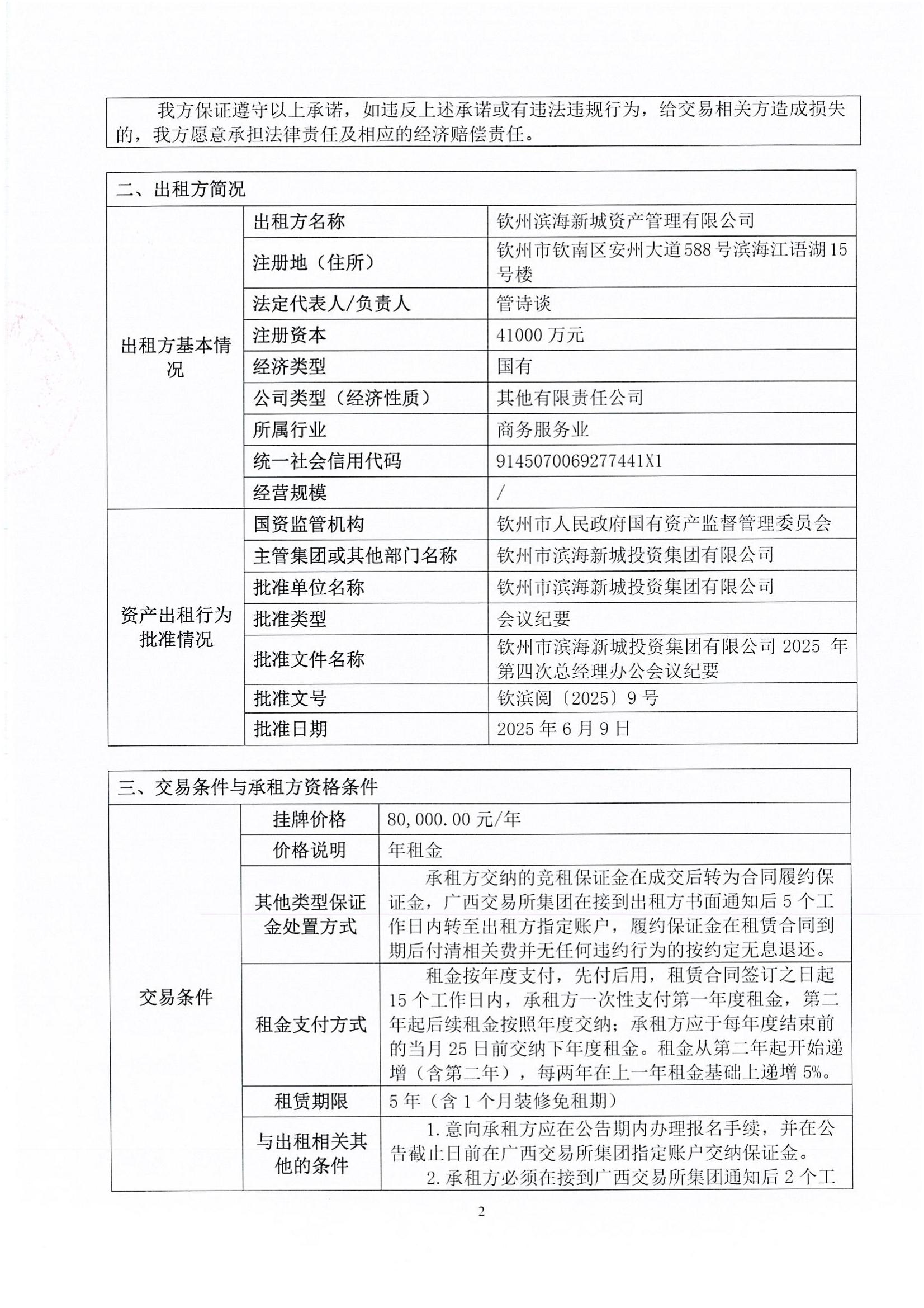 欽州市濱海新城地下綜合管廊(菩提路段)控制中心管理用房公開招租項目